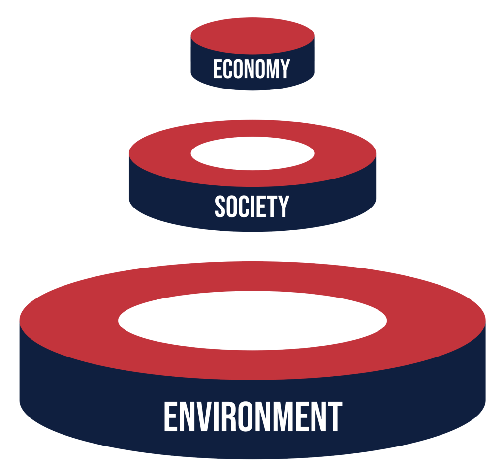 Sustainability has three interconnected dimensions: the biosphere, society and economy. As a global society we need to ensure that we do not exceed the capacity of each of these and that we avoid extracting more than each dimension can sustain.